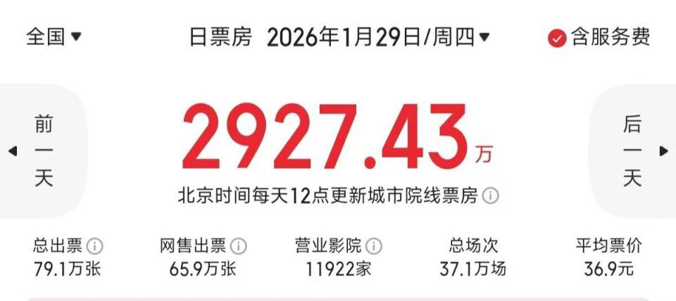 1 万 2 千家电影院,分 2900 万票房。