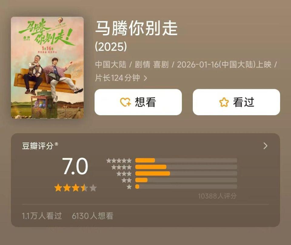 一月以来的新片:豆瓣 7 分的《马腾你别走》,票房 1300 万(我本来准备写文吐槽这部电影的,但看了一下票房,算了,不忍心);豆瓣 6.8 的《我的朋友安德烈》,票房 1400 万。
